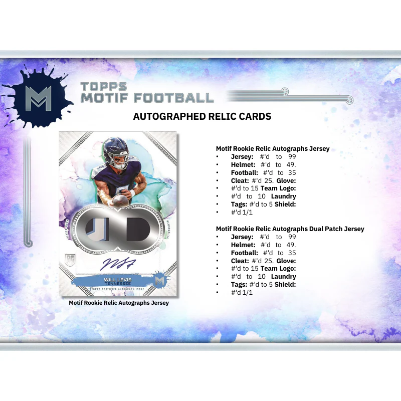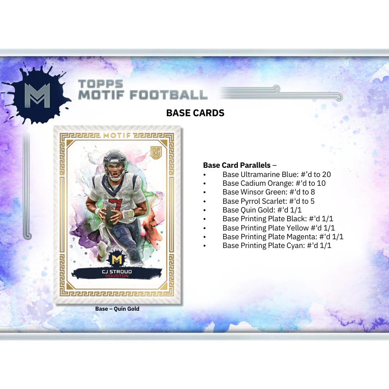 • 2023 Topps Motif Football A brand new program for the Topps catalog, Motif will feature a high-class art style theme across all designs in the product.